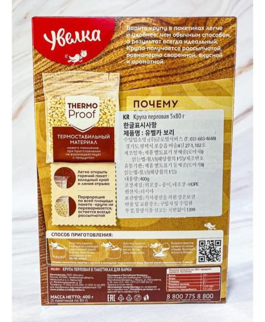 [241104] 우벨카 보리쌀 100% 400g (80g*5EA)