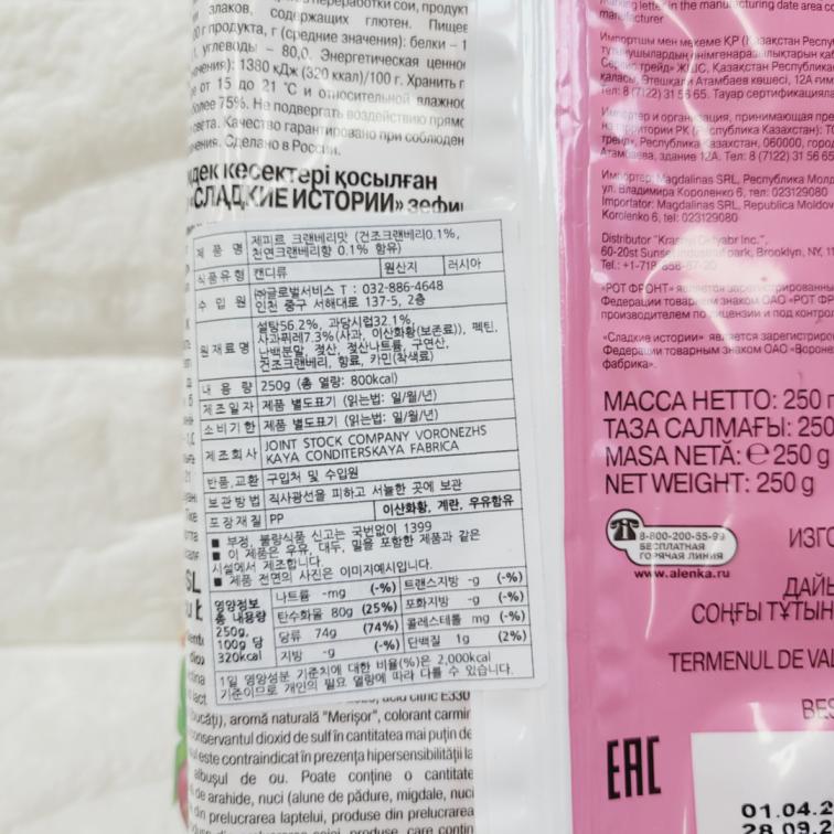 [733625] 제피르 크랜베리맛 250g