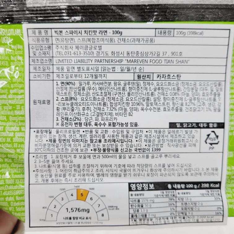 [274418] 빅톤 스파이시 치킨맛 라면 100g