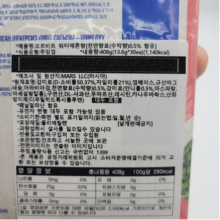 [113270] 오르빗 워터메론향 껌 13g*3개