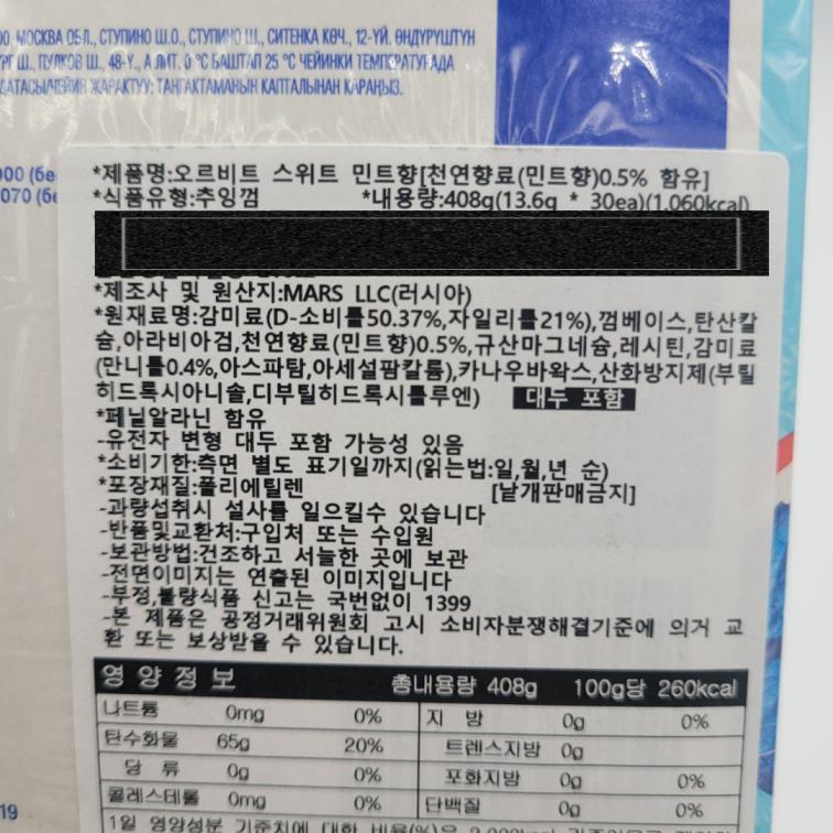 [173808] 오르빗 스위트 민트향 껌 13g*3개