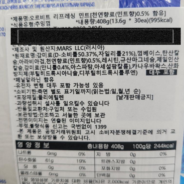 [069942] 오르빗 리프레싱 민트 껌 13g*3개